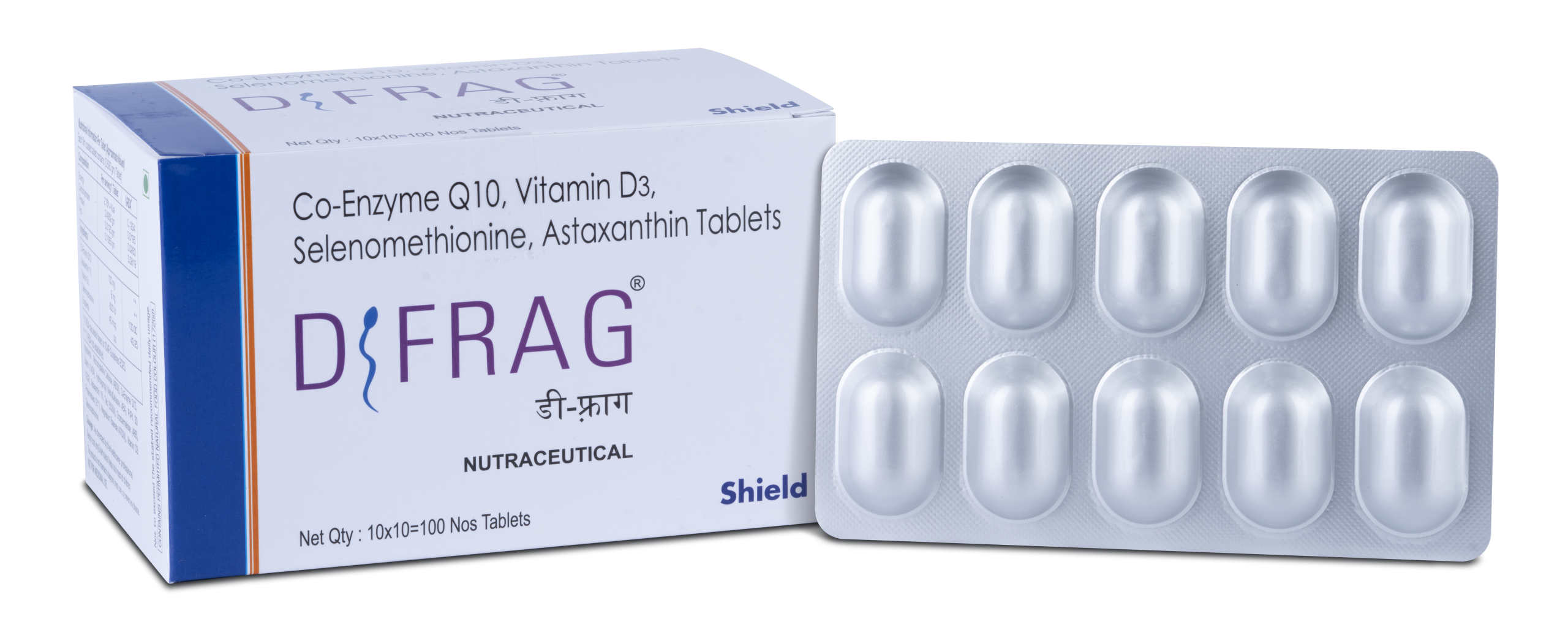 Dfrag Tablet is a health supplement formulated to help protect body tissues and cells from oxidative damage. It combines Coenzyme Q10, Astaxanthin, Vitamin D3, and Selenomethionine to support energy production, immune function, and overall cellular health.