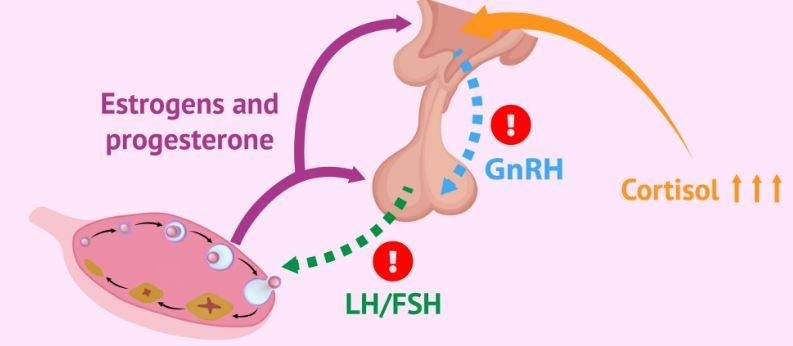 Fig 1. Alterations in the HPO axis in stressed women (https://www.invitra.com/en/stress-hinders-pregnancy/hormonal-alteration-women-chronic-stress/)